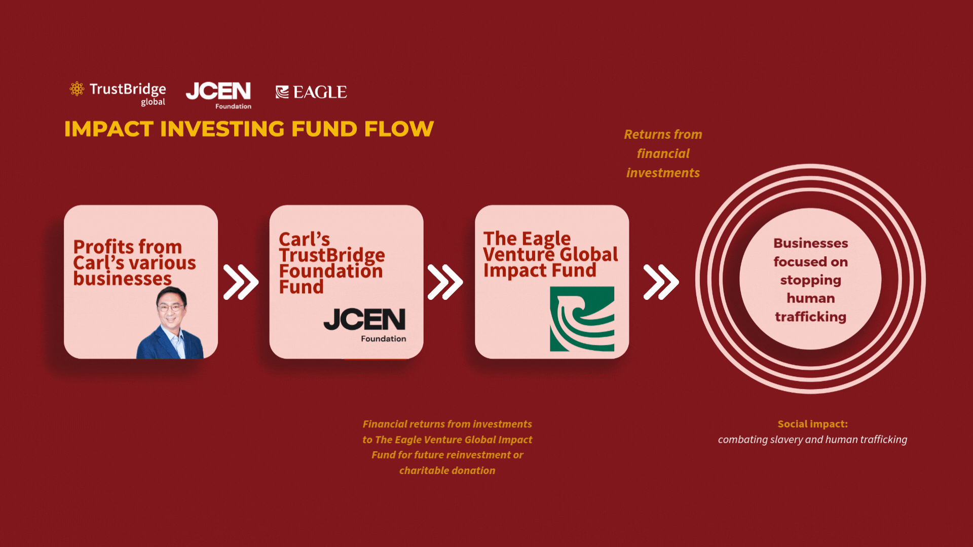 For Carl, combing his generosity, entrepreneurship, and social impact is simply a natural expression of how his capital can serve a greater purpose.“TrustBridge Global’s Impact Investing giving solution allows me to bring together some of my greatest passions—charitable giving, entrepreneurship, and creating social impact—in a way that is innovative, impactful, convenient, and truly rewarding,” Carl says.